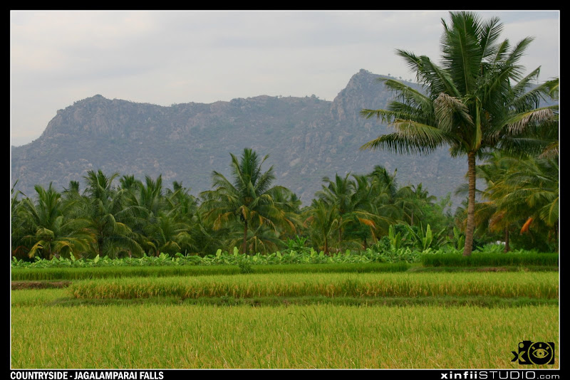 To reach Jagalamparai Falls, one has to drive through 14 kms of countryside land. It would be a fantastic experience riding though such scenery, kids playing around and bullock carts on the way.